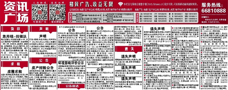 ●杨培蓓不慎遗失坐落于东方市八所镇琼西路西侧碧海云天小区公寓楼7(层)710房的不动产权证,证号:琼〔2023〕东方市不动产权第000632号,特此声明作废。