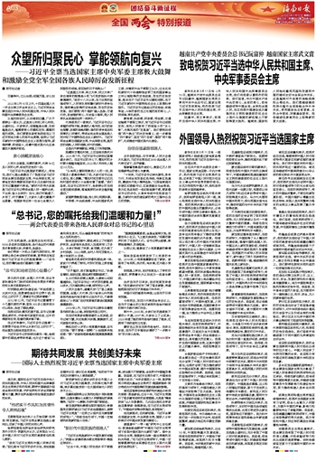 “习近平同志全票当选国家主席、中央军委主席,向世界传递了中国坚定扩大开放、携手共建人类命运共同体的时代强音。”广西民族大学“一带一路”研究院秘书长胡超说,习近平总书记着眼中国和世界发展大势提出“一带一路”倡议,10年来蓝图渐成实景,共建“一带一路”让世界分享中国式现代化带来的发展机遇,为更多发展中国家独立自主探索适合自己的现代化道路增添了信心。中国式现代化道路越走越宽广,中国发展惠及世界。