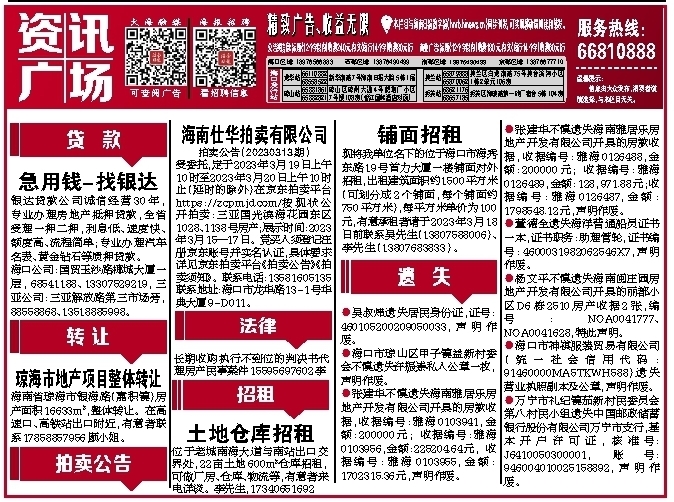 海口公司:国贸玉沙路椰城大厦一层,68541188、13307529219,三亚公司:三亚解放路第三市场旁,88558868、13518885998。