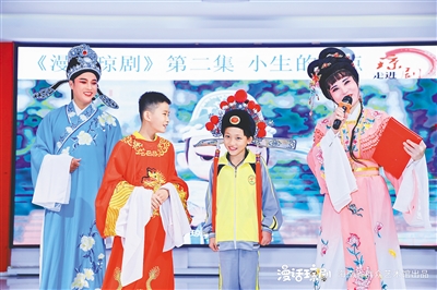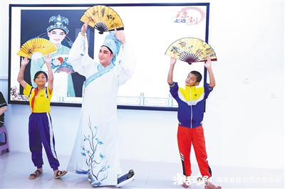 每次进校园,省群艺馆都会邀请琼剧名家或一线演员同行,让这些业内人士近距离为孩子们表演琼剧,带着孩子们学琼剧知识和琼剧表演基本功。同时,设置动漫海报展览、戏曲脸谱设计、长卷戏曲文化绘画等环节,让孩子们“沉浸式”感受琼剧、爱上琼剧。