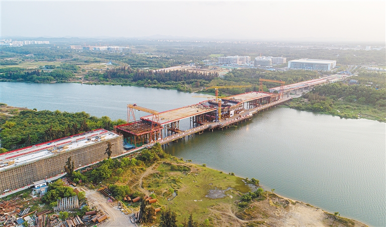本报博鳌3月14日电(记者陈子仪 通讯员熊志欣)3月14日,海南日报记者了解到,由中交二航局承建的博鳌乐城大桥完成关键性节点工程——历时3个半月,长184米、宽36米、重约3700吨钢箱梁顺利完成顶推施工。