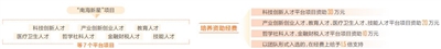 “南海新星”项目按照坚持党管人才、竞争择优、鼓励创新、注重实绩原则,分科技创新人才、产业创新创业人才、教育人才、医疗卫生人才、哲学社科人才、金融财税人才、技能人才等7个平台项目。平台项目入选人员由省财政给予培养资助经费。其中,科技创新人才平台项目资助30万元,产业创新创业人才、教育人才、医疗卫生人才、技能人才平台项目资助20万元,哲学社科人才、金融财税人才平台项目资助10万元。以团队形式入选的,在经费上给予1.5倍支持。各平台项目名额根据年度实际进行分配。青年人才(3人及以上)组建团队的也可以联合申报。