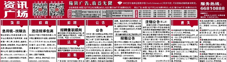海口公司:国贸玉沙路椰城大厦一层,68541188、13307529219;三亚公司:三亚解放路第三市场旁,88558868、13518885998。