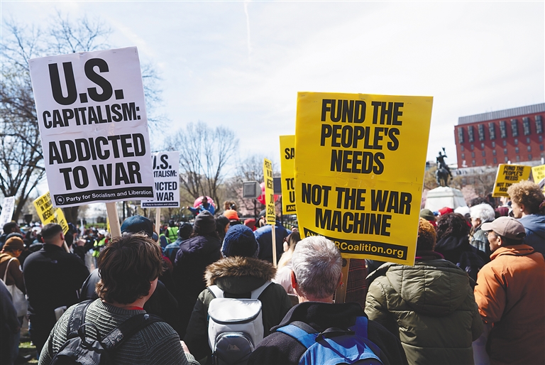 美国当下通货膨胀严峻,银行危机加剧经济衰退预期,俄亥俄州“毒列车”脱轨事故持续发酵暴露监管和基础设施不足……反战人士呼吁美国把注意力和资源放到解决自身问题上,不要再为运转“战争机器”而烧钱。