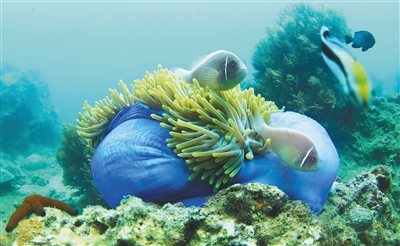 “这是因为小丑鱼的身体表面有一层黏液,可以使它不受海葵触手的影响。”海南自然观察达人谷峰介绍,小丑鱼在海洋中处于弱势地位,它们选择栖息于海葵中或海葵附近,以海葵吃剩的残渣为食。有了海葵触手的保护,它们能免遭大型鱼类的攻击,安心筑巢、产卵。