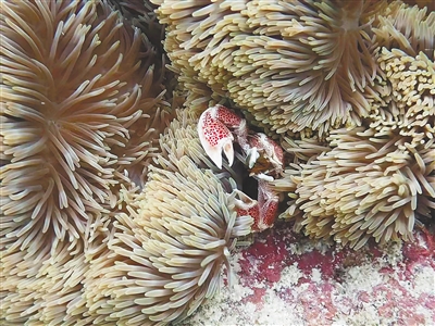 “除了小丑鱼,海南岛周边海域还有一些海洋动物与海葵之间存在共生关系,如三斑宅泥鱼、瓷蟹、寄居蟹等。”谷峰补充道。