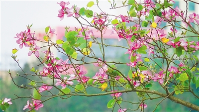 在我国,人们口中“紫荆花”所指种类较多,相对应的树种也有多种。海南常见的紫荆花,是羊蹄甲属植物开的花。它们花色艳丽,冬春时节绽放于枝头,有团结和睦等美好寓意。
