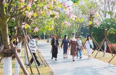 羊蹄甲属植物花期较长,而且吸附灰尘的能力强,是我国南方广泛栽种的行道树、绿化树。在海口万绿园、海口市人民公园、海口美舍河凤翔湿地公园等地,均可看到羊蹄甲属植物的花影。冬春季节,市民游客可前去赏花。