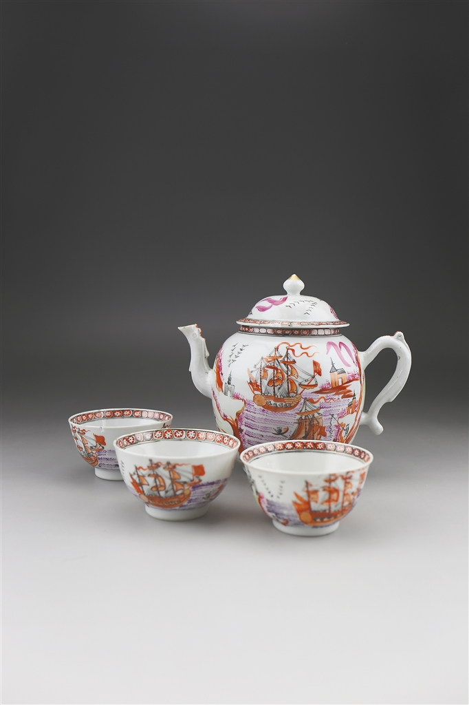 在造型方面表现出强烈的中西合璧的风格。除了艺术欣赏和装饰类的器物保留中国大多传统式样,为了适应欧美市场,根据西方人的生活方式而定制,生产出大量的具有生活实用性的器皿,如餐具、咖啡具、茶具、啤酒杯等。这些器皿常常都有不同的搭配系列, 除了配备各式不同规格的盘、碟、碗之外, 还有调味瓶、甜点杯、水果碟、烛台等多种样式的陈设摆件, 这些组合又因不同国家的生活习惯而有所不同。