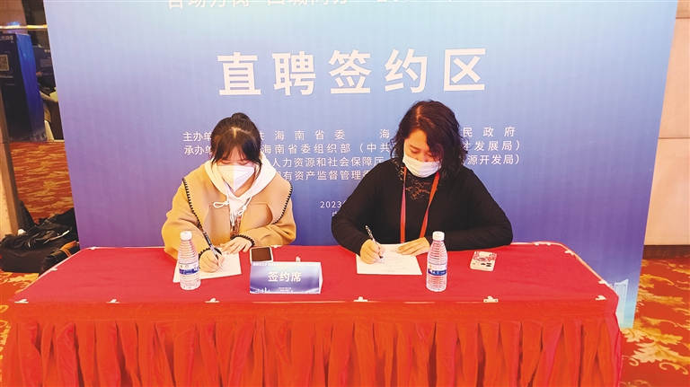 西安专场现场,一位求职者与海南雅布伦投资有限公司签订就业意向书。 本报记者 黎鹏 摄