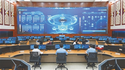 3月21日,海南省数据大厅内,工作人员在操作系统。本报记者 张茂 摄