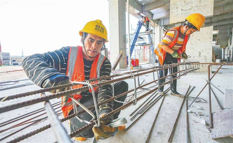 3月22日,海南医学院第一附属医院江东新院区项目建设现场,工人正在紧张施工。自开工建设以来,该项目紧抓节点工期,增速施工,利用智慧建设系统实时监测工人、物料、建设进度等情况,保证施工安全,提升管理效率。目前,该项目主体结构已经完工,二次结构施工已经进入尾声,即将全面进入装饰装修阶段,并将于2024年3月交付使用。本报记者 陈元才 通讯员 伍旭君 图/文
