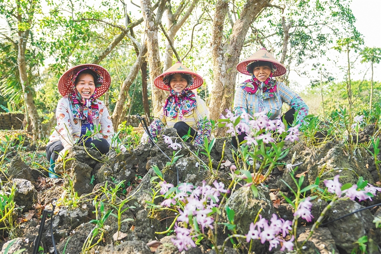 仲春时节的海口市秀英区石山镇施茶村,草木葱茏、瓜果飘香,三角梅竞相盛开。山脚下,石斛的根须扎进火山石的孔洞中,伸出的枝条绿意盎然、随风摇曳。如一支支画笔,描绘着火山村落的乡村振兴新图景。