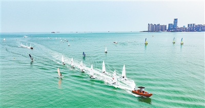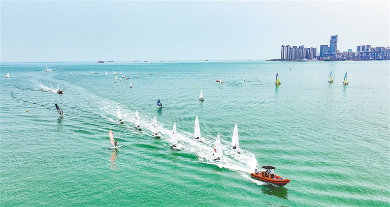 3月25日的海口西海岸,点点帆影随海浪波动,各类水上运动火热进行着。近年来,海口市在西海岸打造地标性品牌水上运动并推动全民参与,促进“文体旅”融合发展,促进海口传统旅游消费和文化体育消费优化升级。本报记者 陈元才 摄
