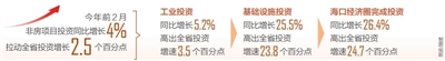 非房项目保障有力。今年前2月非房项目投资同比增长4%,拉动全省投资增长2.5个百分点。其中,新建项目完成投资同比增长18.8%,高出全省投资增速17.1个百分点,拉动全省投资增长9.3个百分点。