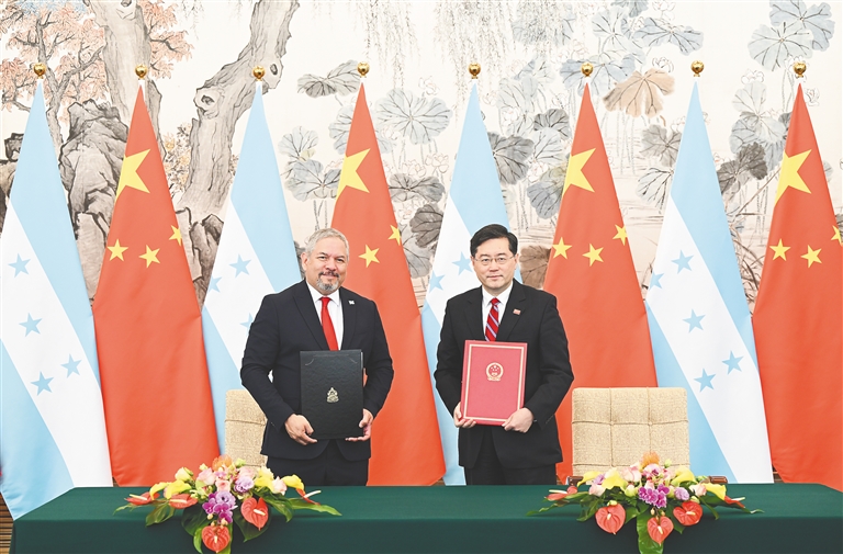 新华社北京3月26日电 (记者伍岳)2023年3月26日,国务委员兼外交部长秦刚在北京与洪都拉斯外交部长雷纳举行会谈,并签署了《中华人民共和国和洪都拉斯共和国关于建立外交关系的联合公报》。主要内容如下: