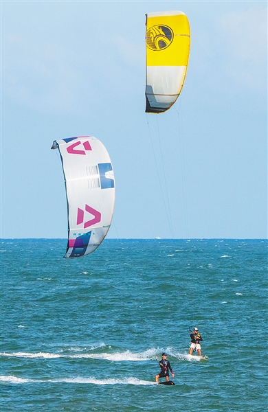 在听海路上,你还能感受到风的力量。风筝冲浪运动,融合了滑水、冲浪、帆板、滑翔伞等运动项目的特征,近年来广受欢迎。博鳌一带的海岸线,是开展风筝冲浪运动的绝佳场地。走进一家体育运动服务机构,在专业教练的带领下,你也能在海天之间放飞自我。