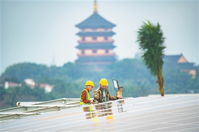 博鳌亚洲论坛年会新闻中心完成“零能耗”建筑改造,打造了“光储直柔”示范项目;提供绿色低碳高品质供水服务,对室外环境进行海绵化改造,促进雨水资源化利用;集成应用多种可再生能源技术,开发绿色能源;构建以智慧交通为基础的绿色交通体系,减少交通碳排放……通过实施这些项目,东屿岛实现了发电量和用电量“收支平衡”,以及建筑会“呼吸”、公园“零能耗”等目标。