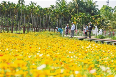 3月23日,走进博鳌镇南强村,只见成片的百日菊、醉蝶花竞相绽放,不少蝴蝶飞舞其间。南强村依万泉河而建,是当地有名的华侨村,在郁郁葱葱的树木掩映下,村里的青砖古道、老宅院更显韵味。
