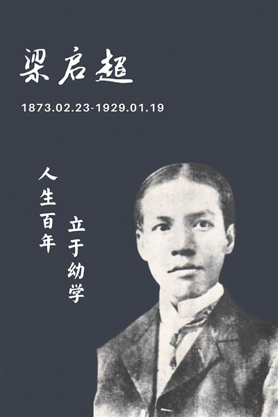 今年是梁启超先生诞辰150周年。他的一生,几乎揽尽近代中国的风云变幻。他是中国近代史上伟大的思想家、政治家、教育家、史学家,是戊戌变法(百日维新)的领袖之一;他是报界先驱,曾创办《时务报》《新民丛报》等;他曾是清华大学的国学导师,该校校训“自强不息,厚德载物”来源于其讲演时引用的《易经》;他是一位天才学者,被誉为“行走的百科全书”;他是近代文学革命运动的理论倡导者,写书总字数达1400多万字,被后人合编为《饮冰室合集》;他还是影响中国历史进程的人物之一,曾成功缔造了“一门三院士,九子皆俊彦”的家族传奇。他轰轰烈烈地爱着他的祖国,他的一生,是报效祖国的一生。他是第一个在文章里使用“中华民族”这个词的人。