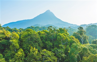 春分时节,海南热带雨林国家公园五指山片区山林蓊郁、薄雾环绕,景色优美。