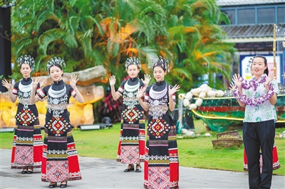 “哎,开船啰!开往南沙,水路遥远,大海茫茫,一岛又一岛……”踏入文化创新展区,悠扬的疍家渔歌,留住了宾客的脚步,收获了阵阵掌声。在这片区域,来宾可以寻找到三亚文脉中的创新基因。