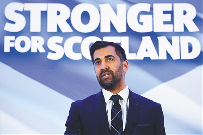 3月27日, 在英国苏格兰爱丁堡,胡穆扎·优素福当选后发表讲话。