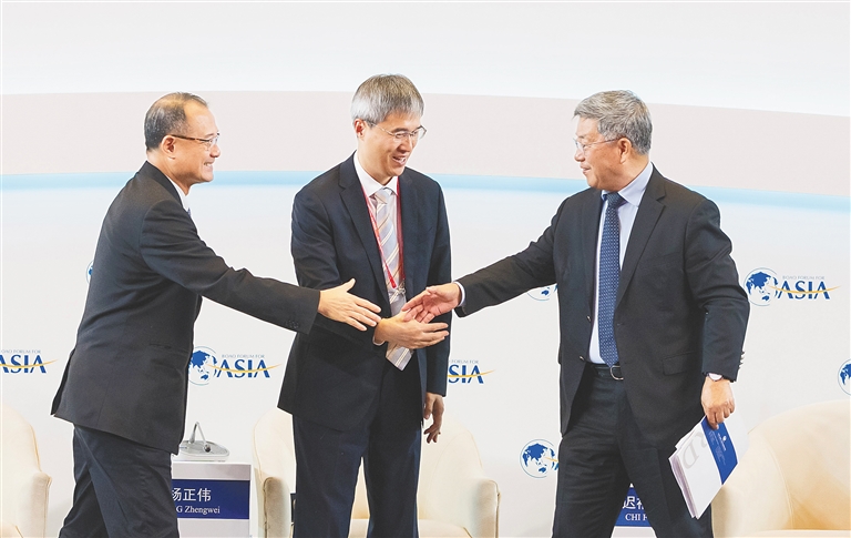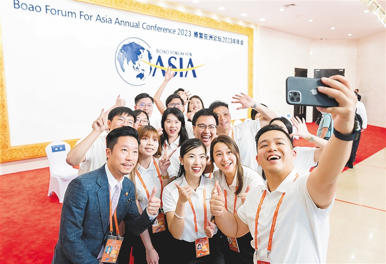 年会期间,中外嘉宾积极沟通,热情交流,新能源、数字经济、知识产权、虚拟世界……一些前沿话题频频被提及。热烈坦诚的思想碰撞中,大家为促进亚洲乃至世界共同发展提供“博鳌方案”,贡献“博鳌智慧”。