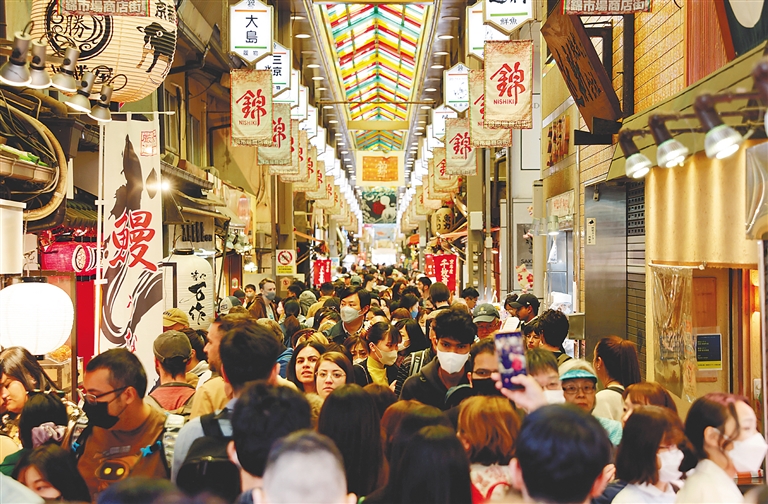 这是3月29日在日本京都的一处市场拍摄的人群。