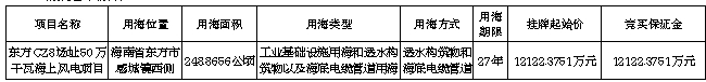 根据《中华人民共和国海域使用管理法》《海南省实施〈中华人民共和国海域使用管理法〉办法》和《海南省海域使用权审批出让管理办法》及有关法律法规规定,经东方市人民政府批准,东方市自然资源和规划局委托海南尚品国际拍卖有限公司以公开挂牌方式出让一宗海域使用权。现将有关事项公告如下: