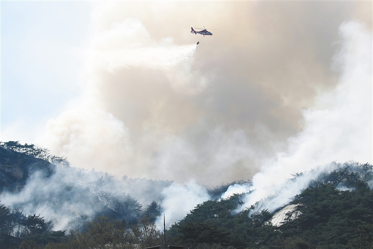 位于韩国首尔市中心钟路区的仁王山山脊处2日上午发生火灾,火势向山顶蔓延。目前没有发现人员伤亡。据韩联社报道,消防部门已投入9架直升机、580名消防人员参与灭火。消防部门紧急限制游客进山,还疏散了附近住宅区的居民。