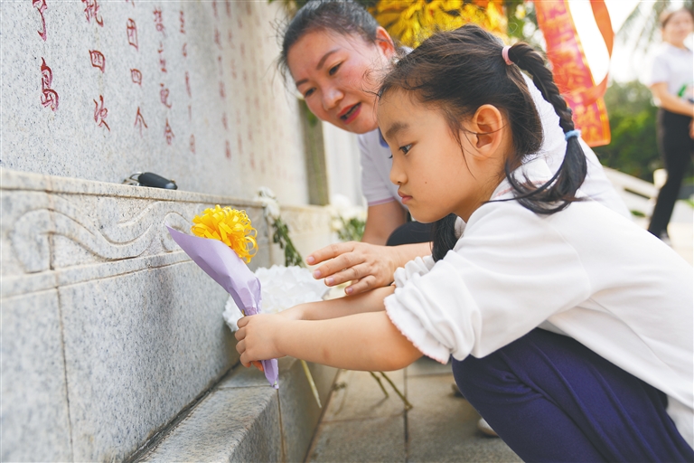4月3日,位于海口市金牛岭公园内的解放海南岛战役烈士陵园迎来清明前祭扫小高峰,众多青少年、市民来到陵园,敬献鲜花,表达对革命先辈的敬仰和缅怀。