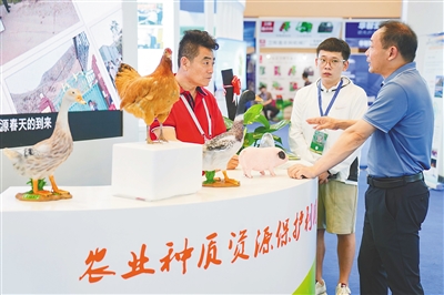 4月3日,在2023中国种子大会种业成果展示会上,参展双方正在沟通交流。本版图片均由本报记者 王程龙 摄