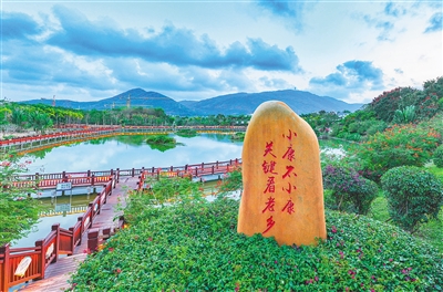 2013年4月9日,习近平总书记来到位于博后村的亚龙湾兰德玫瑰风情产业园考察,提出了“小康不小康,关键看老乡”这一重要论述,为我国全面建成小康社会,解决“三农”问题指明了方向,也极大地鼓舞了当地干部群众。两行大字如今被镌刻在博后村哎岬湖畔的石碑上,生根在村庄的土壤里。