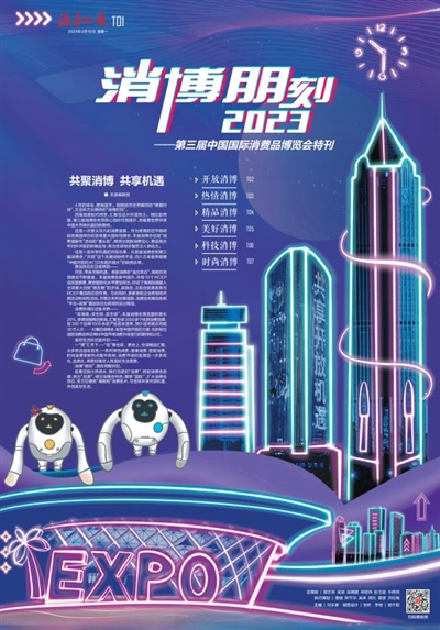 特刊从“开放消博”“热情消博”“精品消博”“美好消博”“科技消博”“时尚消博”六个角度呈现消博会发展脉络,绘制精美手绘,融合赛博朋克、霓虹、现代画风,结合科技元素,展示消博会精品,以此展现中国开放的大门只会越开越大的风范、海南加快建设具有世界影响力的中国特色自由贸易港的成效。