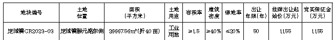 三、竞买事项:(一)竞买人资格范围:中华人民共和国境内外的自然人、法人或其他组织均可申请参加竞买(注:失信被执行人不得参加本次竞买)。本次挂牌出让不接受联合申请,属境外的企业或其他组织的,须提供境外公证部门的公证书及法律规定的其他文件。该宗地竞买人资质由定安县塔岭工业园区管理委员会初审。具有下列行为竞买人不得参加本次土地出让挂牌:1.在定安县范围有拖欠土地出让金行为,并未及时改正的;2.在定安县范围有因自身原因造成闲置土地,并未及时纠正的。3.根据《海南省自然资源和规划厅关于加强土地供应竞买人资格审核的通知》(琼自然资函〔2020〕1753号)文件规定,原非法占地、违法建设行为人。(二)竞买人必须一次性缴纳竞买保证金到定安县自然资源和规划局指定账户。也可依照《海南省自然资源和规划厅关于海南省土地交易市场竞买保证金可使用银行保函的通知》(琼自然资规〔2022〕7号)的规定使用银行保函方式提供土地竞买保证金,保函方式需在竞买保证金到账截止时间前2个工作日送达。(三)本次国有建设用地使用权挂牌出让设有底价,按照价高且不低于底价者得的原则确定竞得人。(四)竞买咨询及报名期限:本次挂牌出让的详细资料和具体要求,详见《定安县国有建设用地使用权挂牌出让手册》。申请人可于规定时间内到我局查询和获取,也可登录海南省建设用地使用权和矿业权网上交易系统(网址:http://lr.hainan.gov.cn:9002)查询下载。报名期限:2023年4月10日8:30至2023年5月12日17:00(以竞买保证金实际到账为准)。(五)竞买保证金:申请人应在2023年5月12日17:00前将竞买保证金存入指定账户(以到账为准)。(六)资格确认:经审查,申请人按规定交纳竞买保证金,具备申请条件的,我局将在2023年5月12日17:30前确认其竞买资格。(七)挂牌报价时间及地点:挂牌起始时间:2023年5月5日8:30。挂牌截止时间:2023年5月15日10:00。挂牌地点:海南省政府会展楼二楼省公共资源交易服务中心土地交易厅。(八)本次竞买活动只接受书面报价,不接受电话、邮寄、电子邮件、口头等其他方式报价。