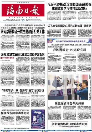 | 海南日报 头版 001 2023-04-101 2023年04月10日 星期一 |