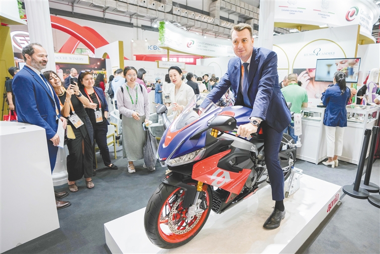 《罗马假日》中,奥黛丽·赫本和男主人公骑着双轮踏板摩托车穿梭大街小巷成为荧幕经典。现在,这款Vespa经典摩托车来到了消博会中国意大利商会馆现场,让观众看见经典与摩登的融合。“希望通过消博会的平台,向全世界消费者展现意大利制造的经典设计和优良品质。”意大利比亚乔集团中国区总裁贵尔福介绍。