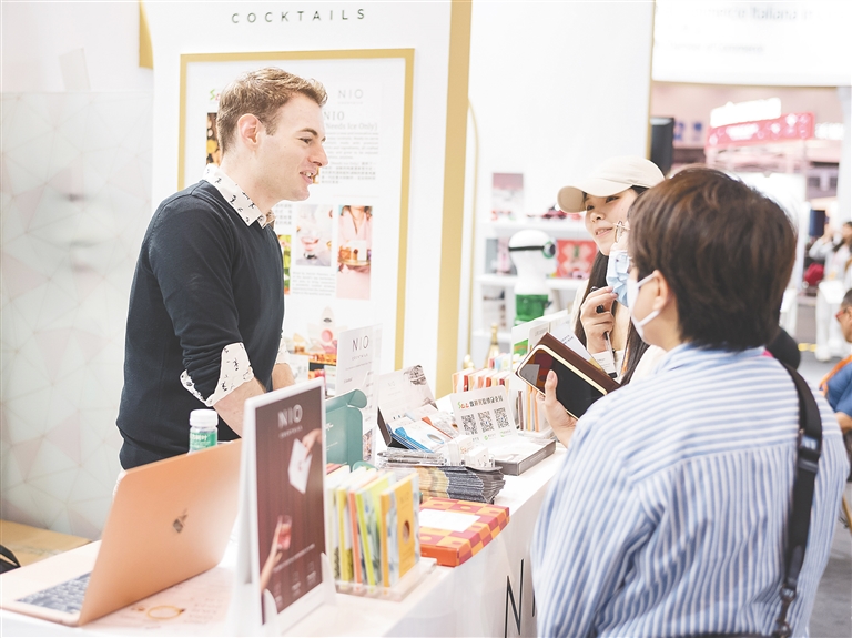 口味多样的意大利冰淇淋是高品质甜品的代表。在该馆卡比詹尼冰淇淋展位前,由新鲜水果现场制作而成的手工冰淇淋吸引观众大排长龙。