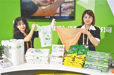 可持续消费论坛现场,工作人员展示一款利用再生塑料制成的圆珠笔。 本报记者 王程龙 摄