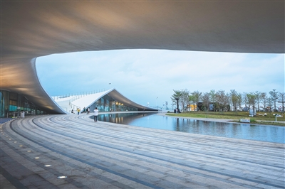 “处在像与不像之间的抽象物”设计理念贯穿会展中心主要建筑物的设计,其中有像波浪一样的五星级酒店、像一滴水落入大海溅起的水花的七星级海上酒店,当然还有那只展翅欲飞的“海鸥”。