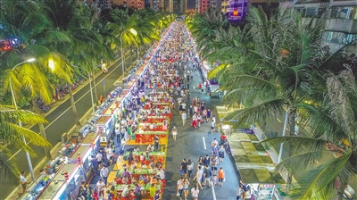 个性化的“微醺集市”只是海甸溪北岸特色文化商业街区的冰山一角,可一览水景的东坡老码头、可吃喝玩乐的华彩海口湾、可观赏落日的天空之山……这条商业街区用它独特的魅力“造地标、吸人气、导流量、高转化”,多彩的夜经济让海甸溪畔焕发生命力。