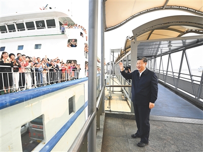 10日下午,习近平来到湛江市徐闻县,考察徐闻港。徐闻港项目是广东与海南相向而行的“头号工程”。在港口专用码头,习近平察看徐闻港全貌,听取广东省提升交通基础设施互联互通水平、对接海南自由贸易港建设相向发展等工作汇报。随后,习近平来到泊位码头,察看船舶停靠、客运转接等。船上的旅客看见总书记来了,纷纷向总书记问好,习近平向大家挥手致意,祝他们一帆风顺。习近平指出,琼州海峡是国家经略南海的战略通道,也是海南自由贸易港建设和发展的咽喉要道,要把“黄金水道”和客货运输最佳通道这篇大文章做好,把徐闻港打造成连接粤港澳大湾区和海南自由贸易港的现代化水陆交通运输综合枢纽。