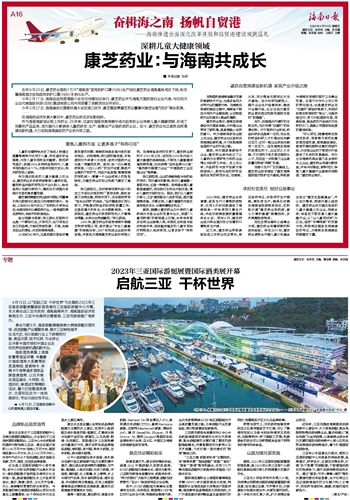 | 海南日报 奋楫海之南 扬帆自贸港——海南推进全面深化改革开放和自贸港建设成就巡礼 016 2023-04-141 2023年04月14日 星期五 |