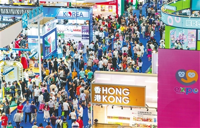 4月14日,第三届中国国际消费品博览会公众开放日首日,现场设置了许多互动环节,人气高涨,吸引全国各地的观众前来品鉴全球精品好物、国潮新品。