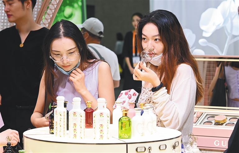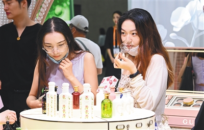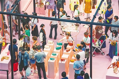 观众在消博会2号馆选购手提包。 本报记者 王程龙 摄