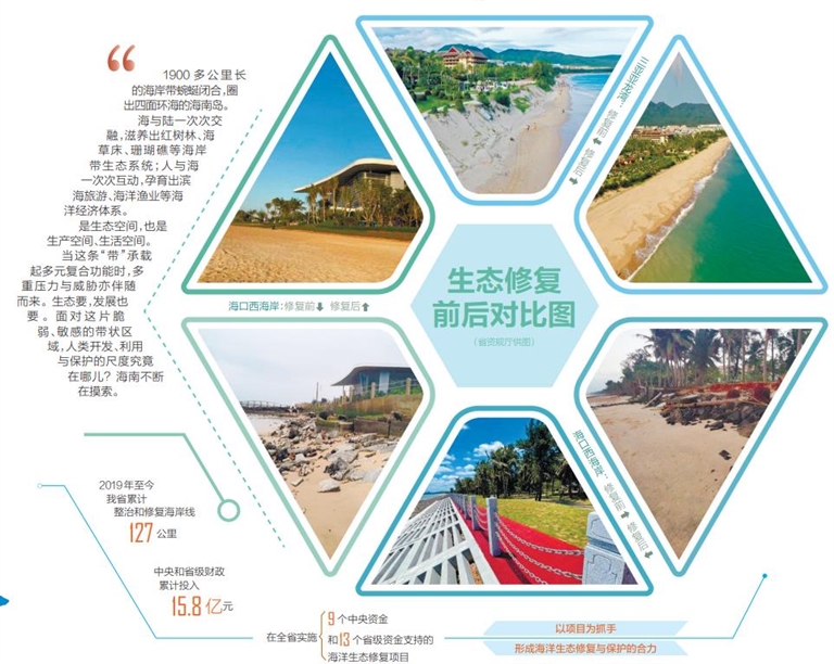 从三亚、儋州到文昌、万宁,从海滩整治修复、滨海湿地修复,到海洋生物资源恢复、周边海域生态环境修复……近年来,一场环琼岛海岸带的生态修复“接力跑”持续进行中。