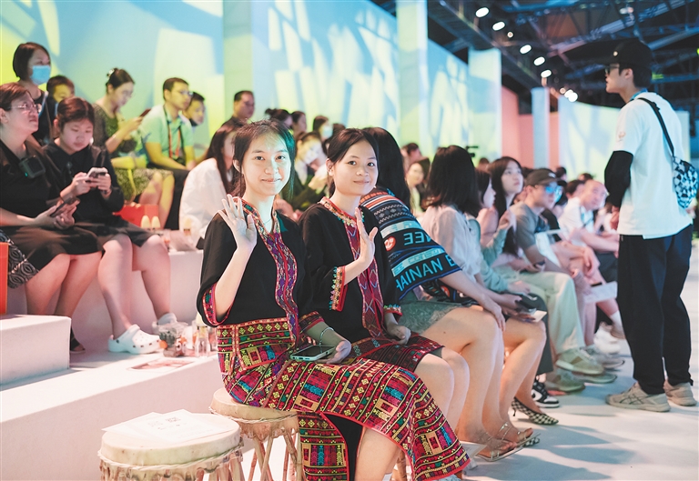 本次时装秀不仅向大家呈现黎族特色黎锦文化,在时装秀现场,来自昌江黎族自治县的棉家文、张早早上台领取“微光女孩”荣誉奖杯。