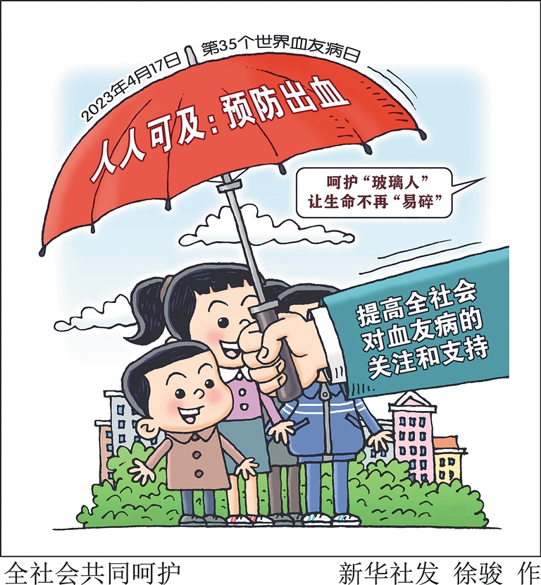2023年4月17日是第35个世界血友病日,今年的活动主题是“人人可及:预防出血”。专家呼吁,提高全社会对血友病的关注和支持,科学防治出血,优化防治策略,提高规范诊疗能力和照护管理水平,促进人人享有治疗的机会。