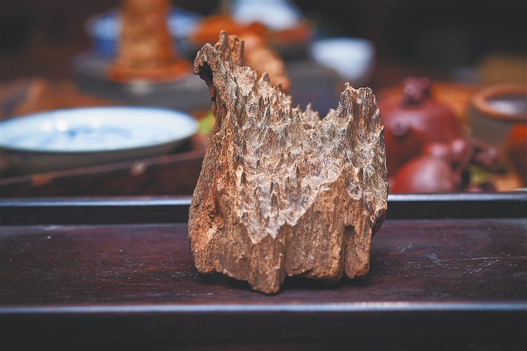 “顾名思义,这是一种能沉入水中的香。”海口市沉香协会会长魏希望说,不同于其他香类,沉香并不是某种树的名字,而是瑞香科沉香属树木受自然电击、刀斧砍劈、虫蚁蚀漏或真菌感染后,创伤部位为修复自身而形成的一种含有木质成分和油脂成分的混合物。